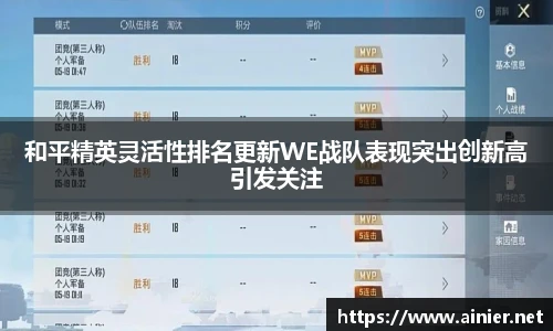和平精英灵活性排名更新WE战队表现突出创新高引发关注